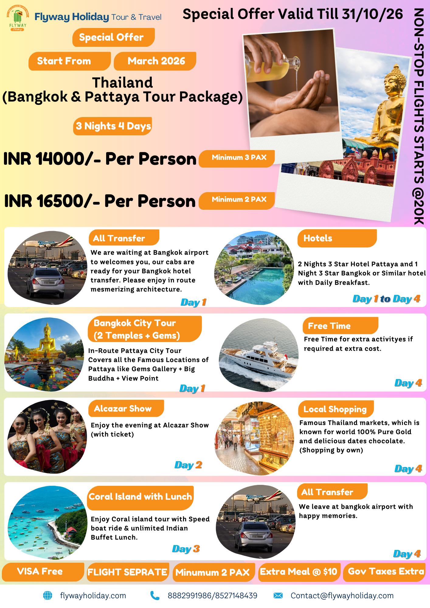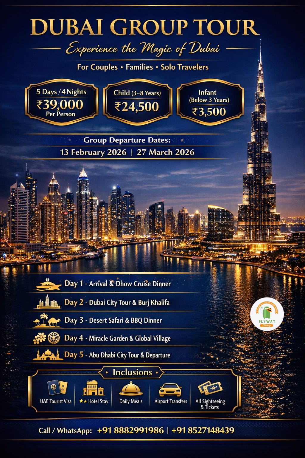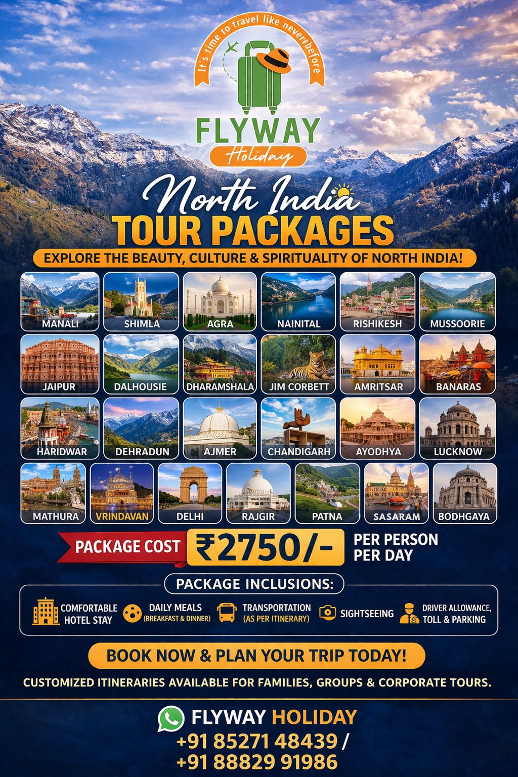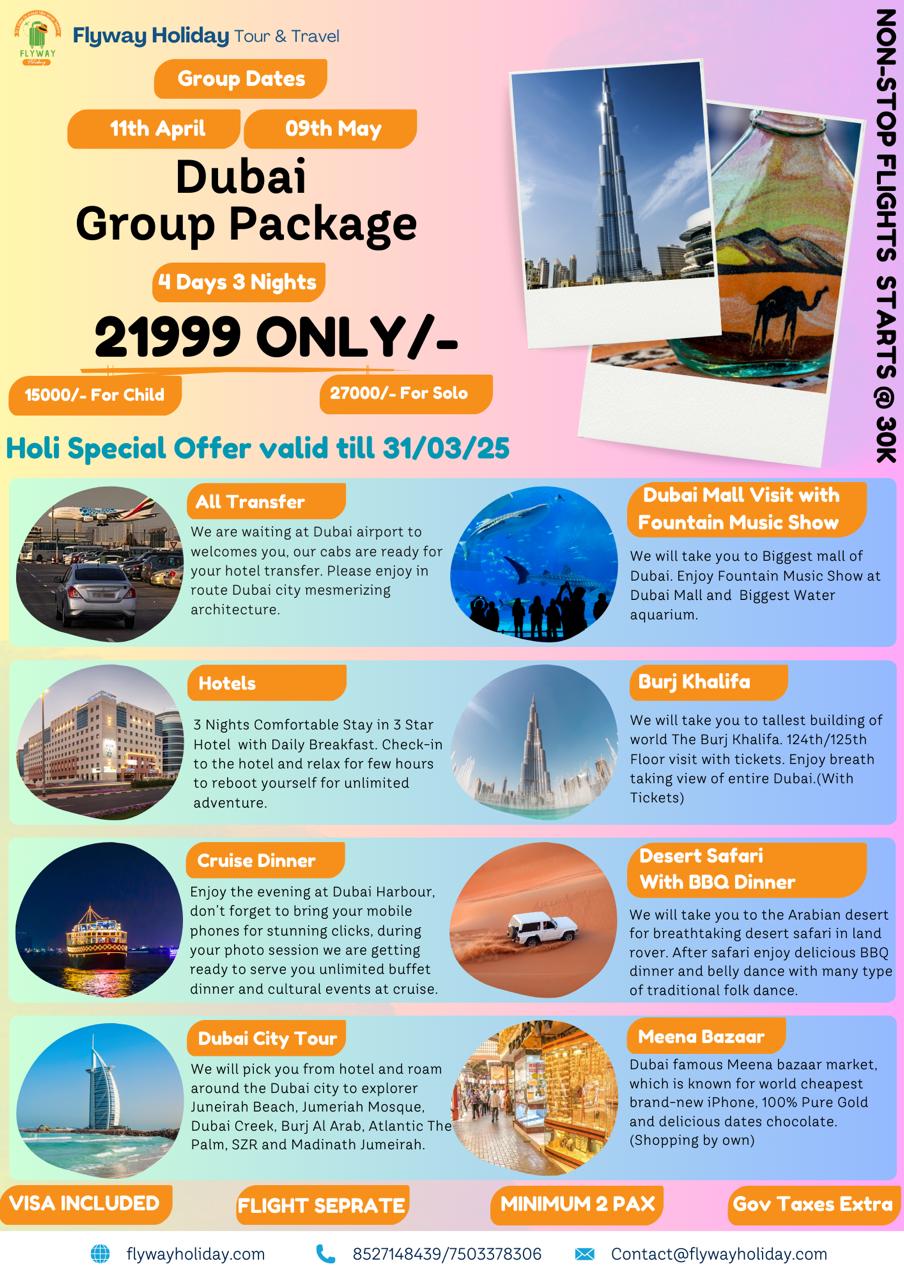 Tailor-made packages based on the client’s preferences, budget, travel dates, and requirements. Ideal for families, couples, and corporate clients